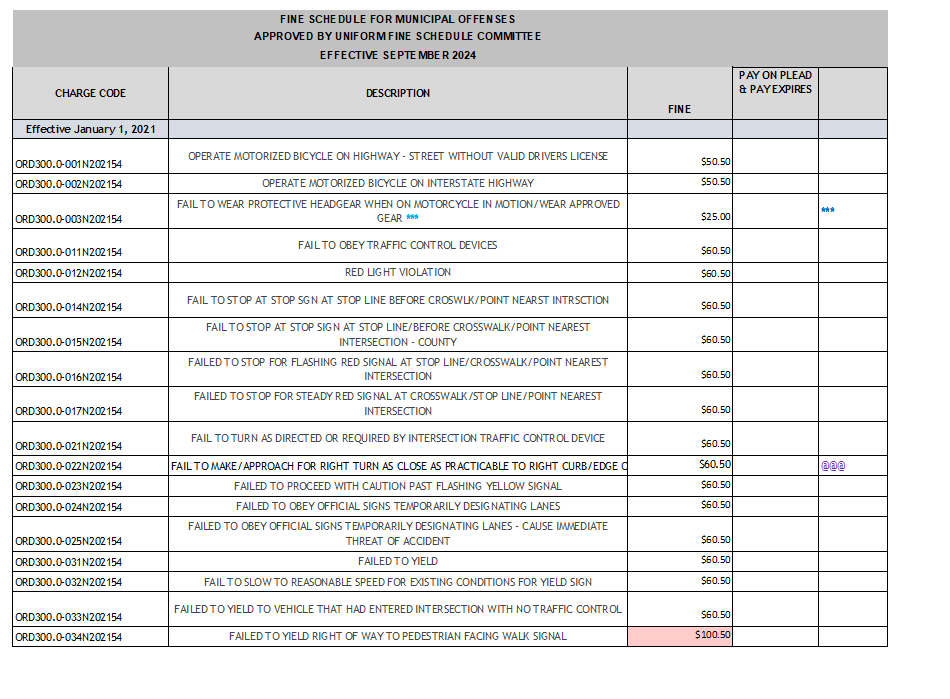 FINE SCHEDULE/MUNICIPAL OFFENSES