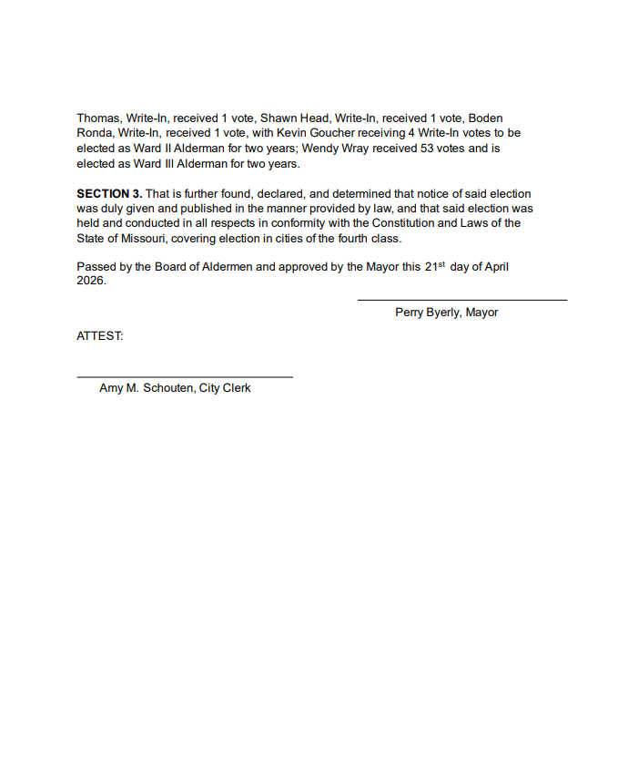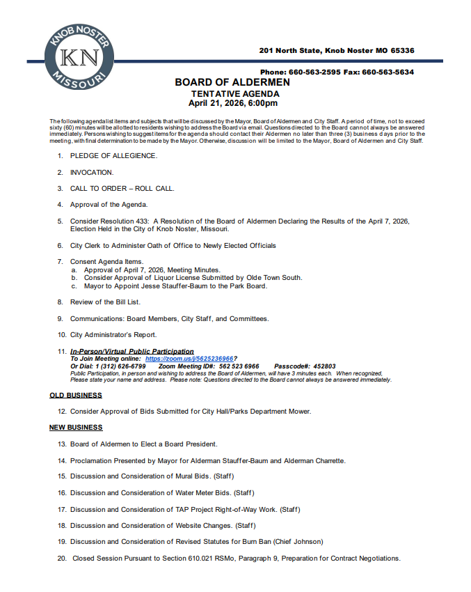 Board of Aldermen Tentative Agenda April 21, 2026 6:00 PM