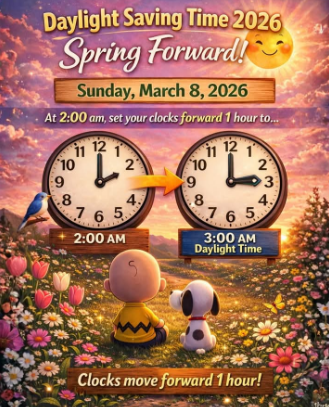 Daylight Saving Time Sunday March 8th 2026