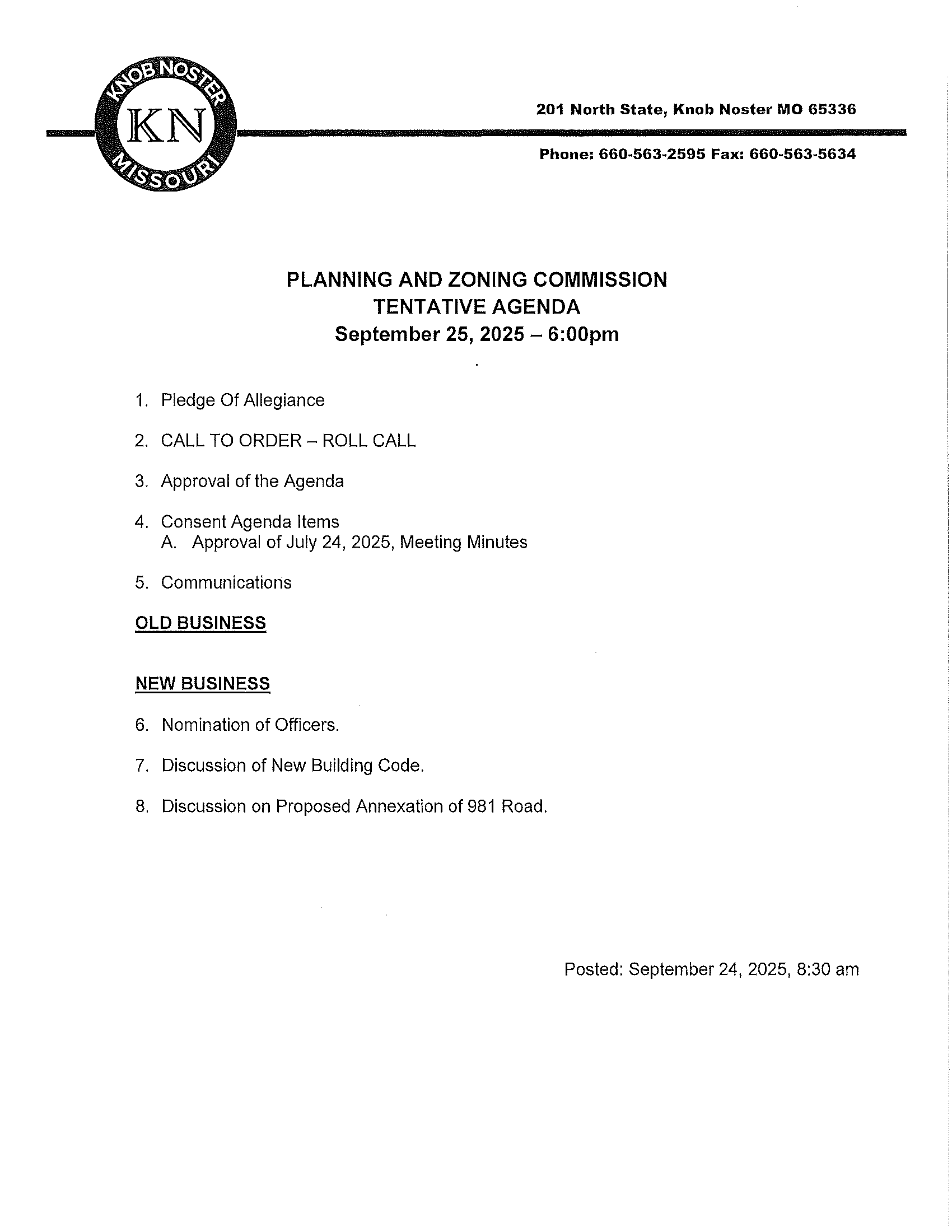 Planning and Zoning Tentative Agenda September 25, 2025 6:00 PM